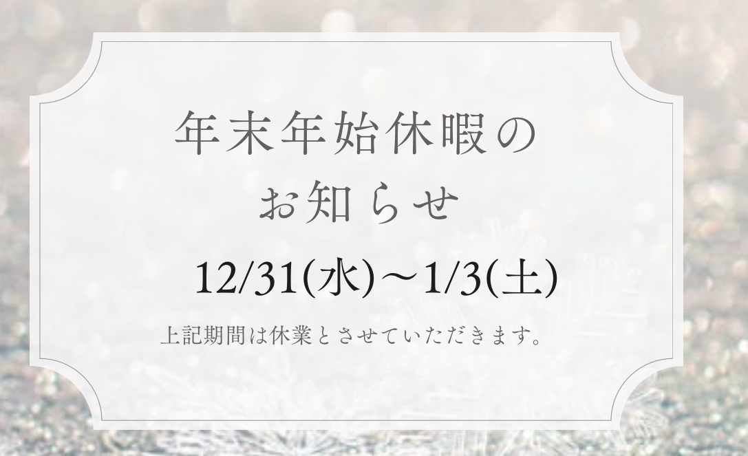 年末年始のお休み 2025 12/01 サロン情報 2025年12月1日 年末年始は 12月31日・1月1日・2日・3日 を お休みとさせていただきます。 年内のメンテナンスや、年明けをスッキリとスタートしたい方は、お早めのご予約をお待ちしております😊 ご予約RESERVATION インターネット上から24時間ご予約が可能です。 ご予約フォーム LINEからご予約 サロン情報 よかったらシェアしてね! URLをコピーしました! URLをコピーしました! ぽっこりお腹ケア この記事を書いた人 Tazawa Kiwa 関連記事 ぽっこりお腹ケア 2025年12月1日 手は心の入り口 2025年11月1日 その重ダルな『肌・身体・心』老化のサインかも… 2025年9月1日 類都8周年記念キャンペーン 2025年7月11日 2025年新年のご挨拶 2024年12月31日 2025年新潟出張日程 2024年12月1日 唇と口腔内のケアの大切さ 2024年11月1日 類都ホームページリニューアル 2024年7月28日 コメント コメントする コメントをキャンセルコメント ※ 名前 ※ メール ※ サイト 次回のコメントで使用するためブラウザーに自分の名前、メールアドレス、サイトを保存する。 Δ