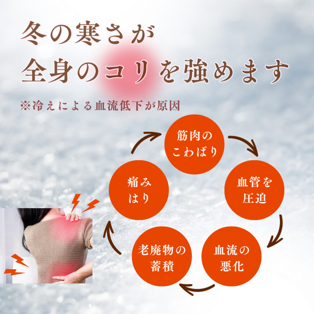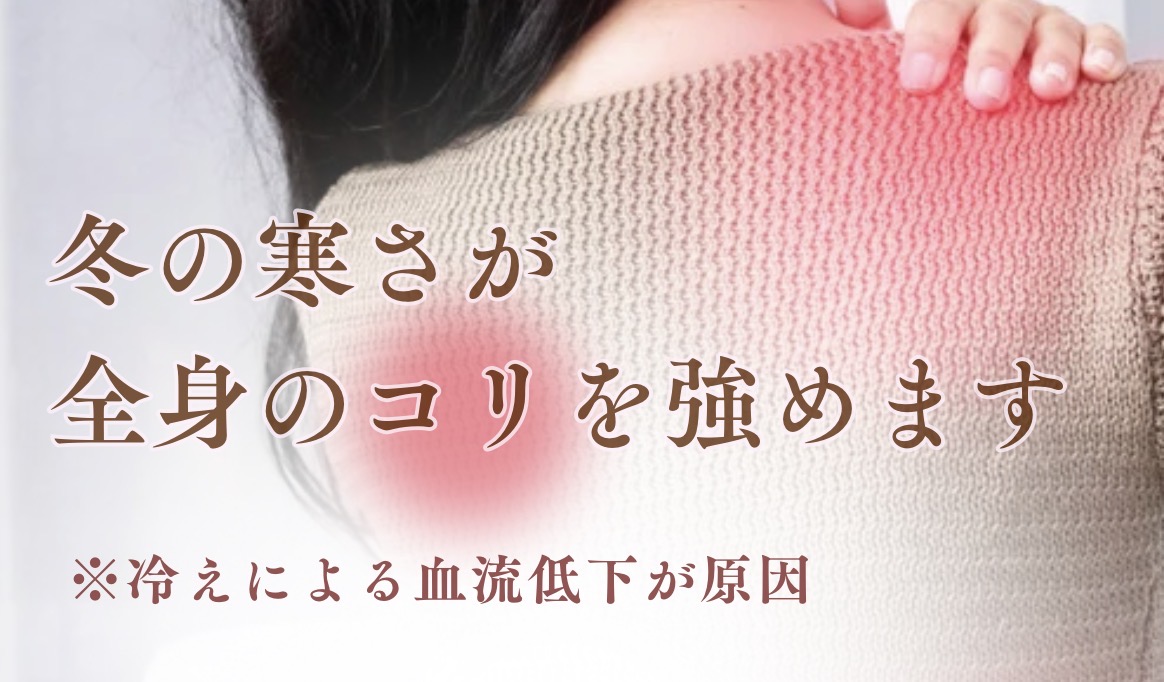 そこに加えて、冬は寒さによって血流が低下し、筋肉はこわばりやすく、コリや不調が悪化しやすい季節。